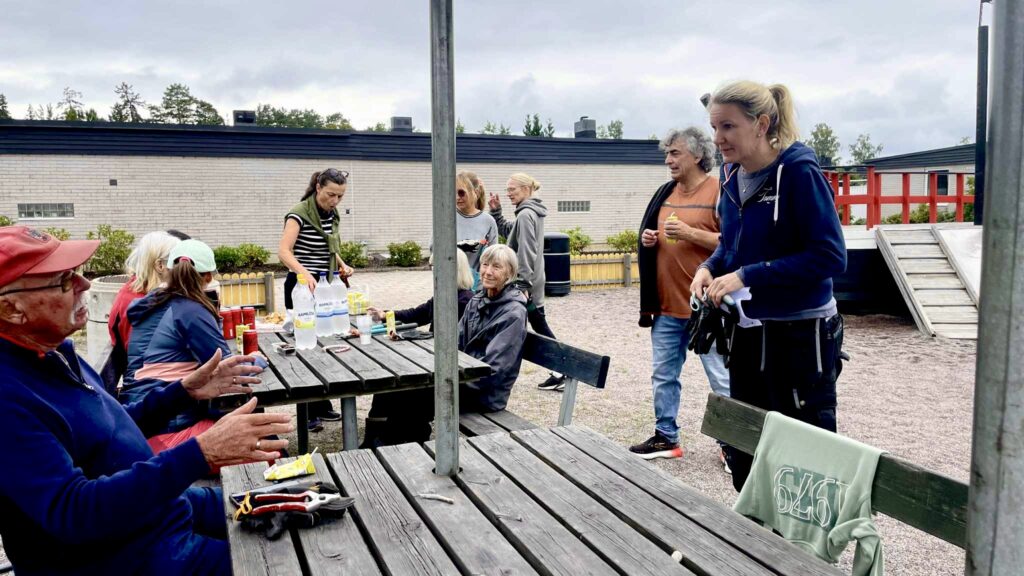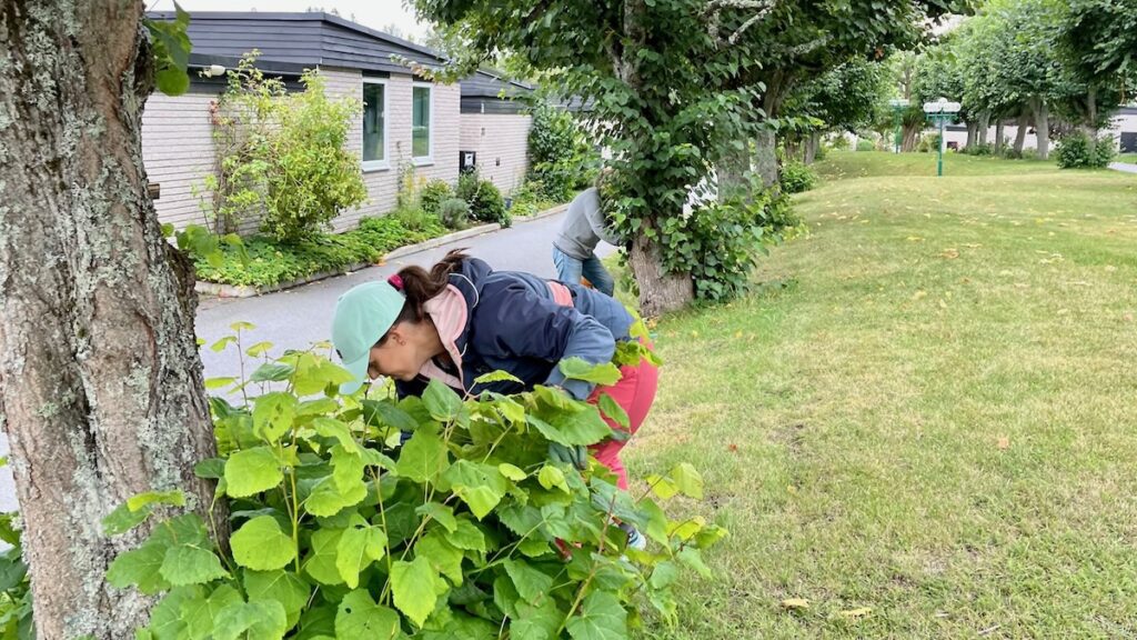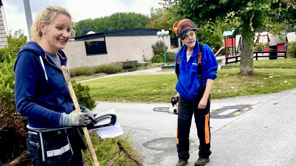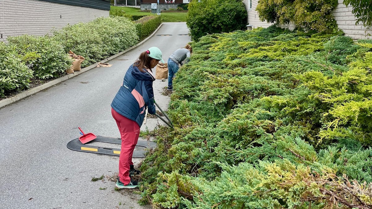 Då vi blev ett stort glatt gäng båda dagarna passade vi även på att röja bort sly i slänten mot Jungfrusundsvägen mellan Hoppargränd och Löpargränd.